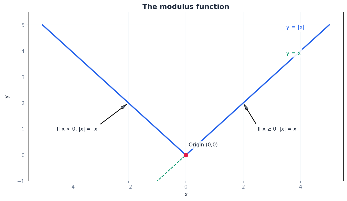 Students often think that |x| can be negative, but actually the modulus function always returns a non-negative value. This is a common source of error in solving equations and inequalities.